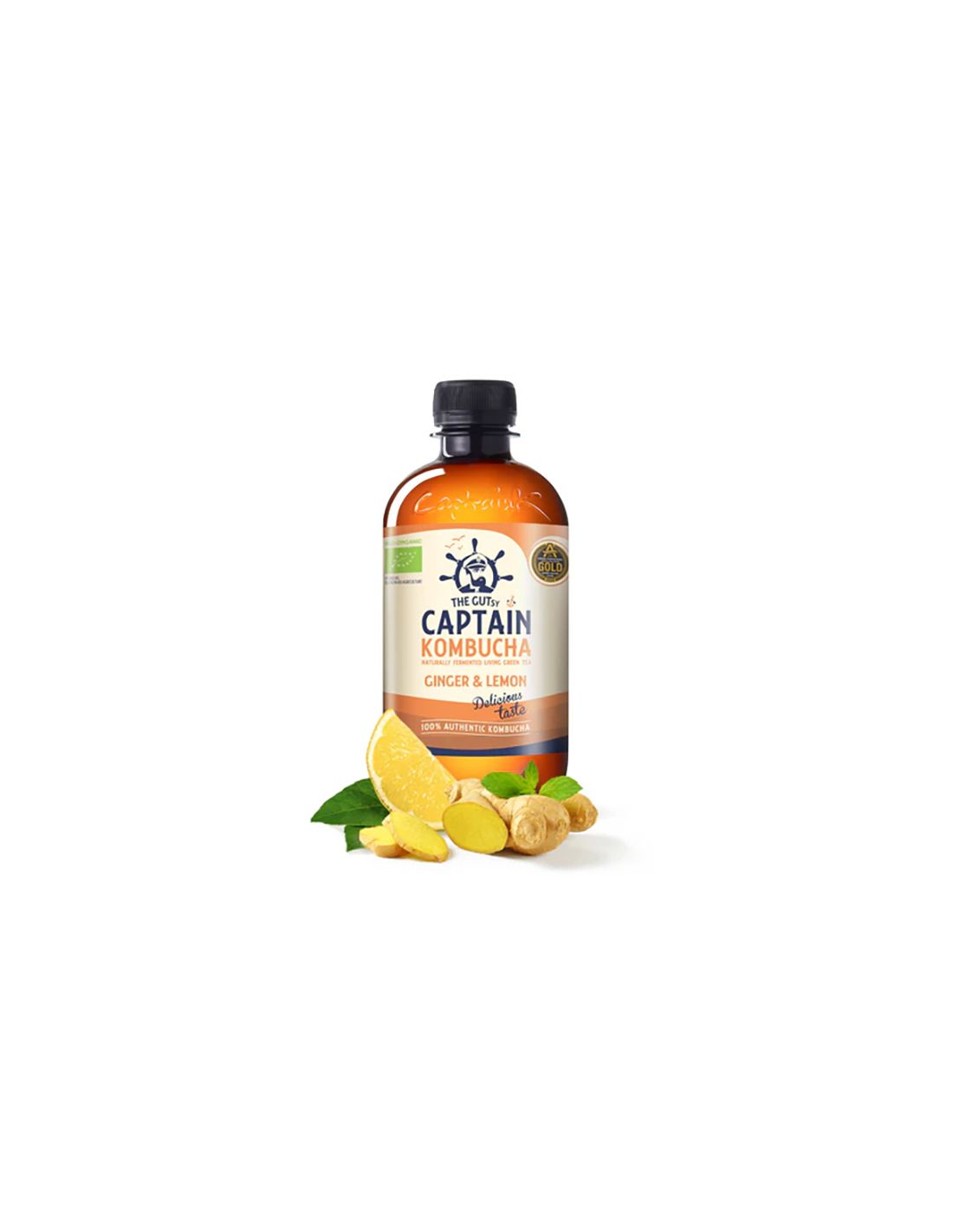 Bebida Kombucha Jengibre y Limón Bio Captain Kombucha - 400 ml.