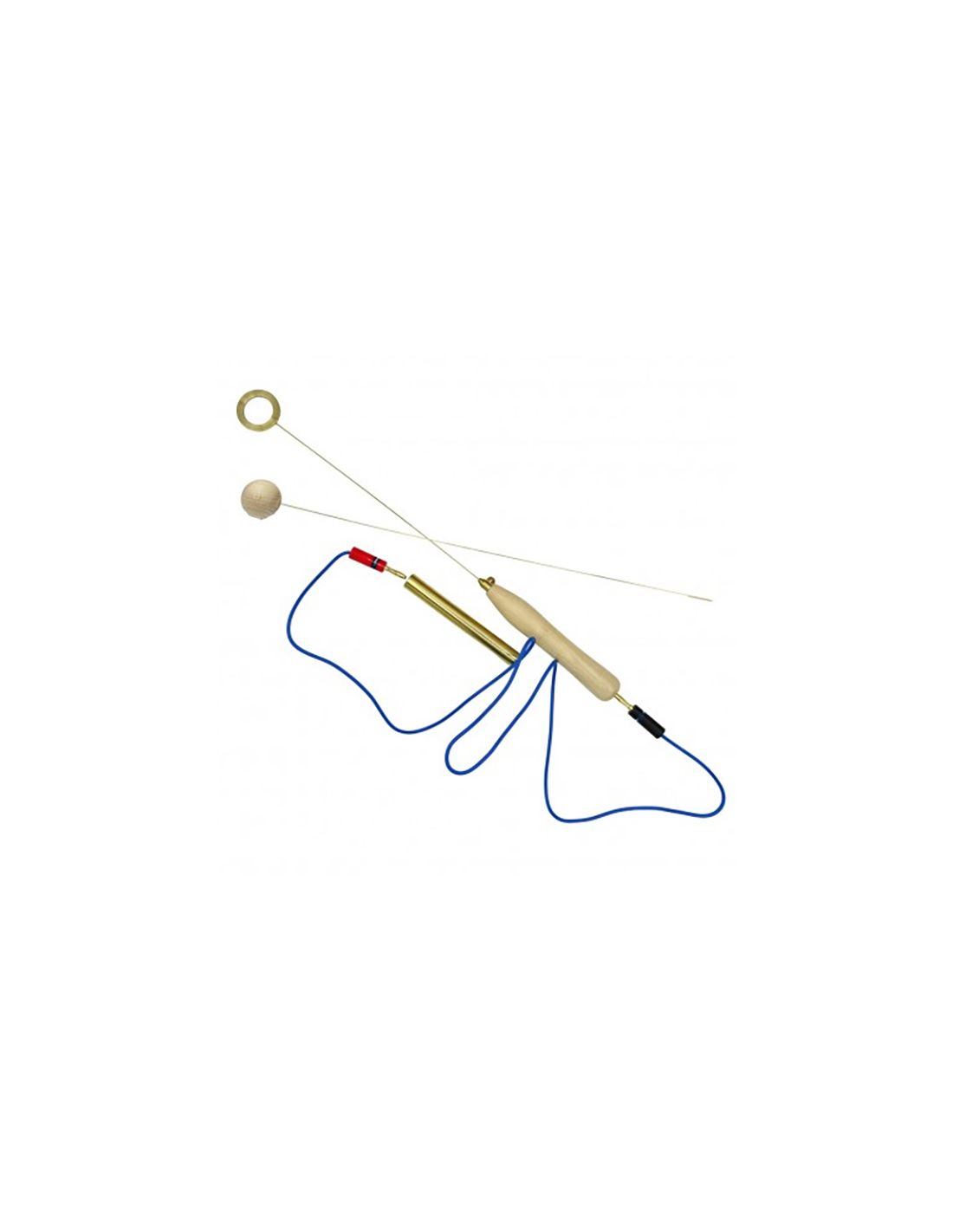 El mango y la cabeza son de madera o metal igual que el biotensor doble. Posee un cable unido al mango que sujeta el paciente como testigo para hacer el diagnóstico.