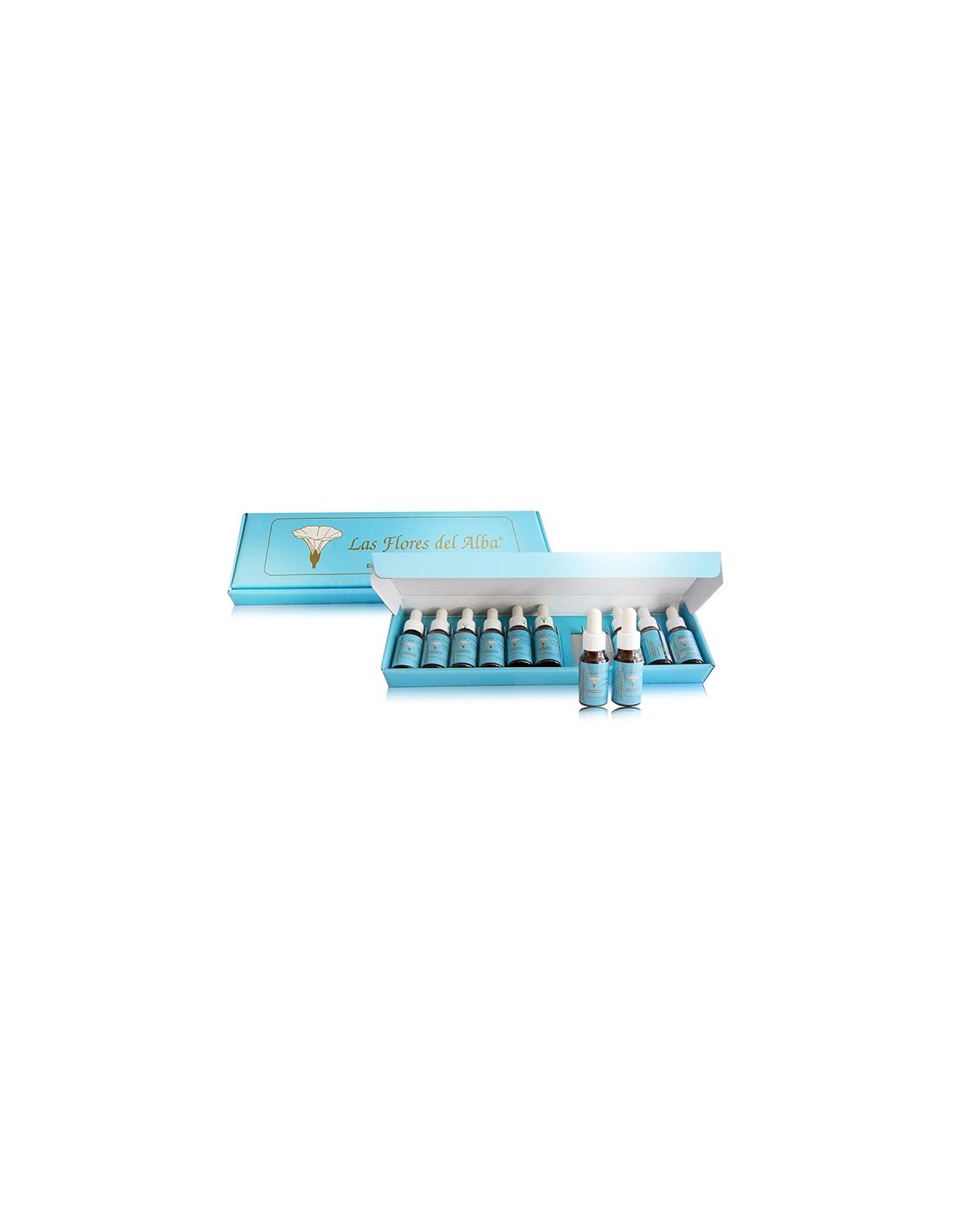 Set que incluye 11 Flores de Alba: Algodón de seda, Alhelí, Ave del paraíso, Azahar, Croto, Lotus del Alba, Mapurite, Papaya, Pomagas, Rosa de montaña y Saman.