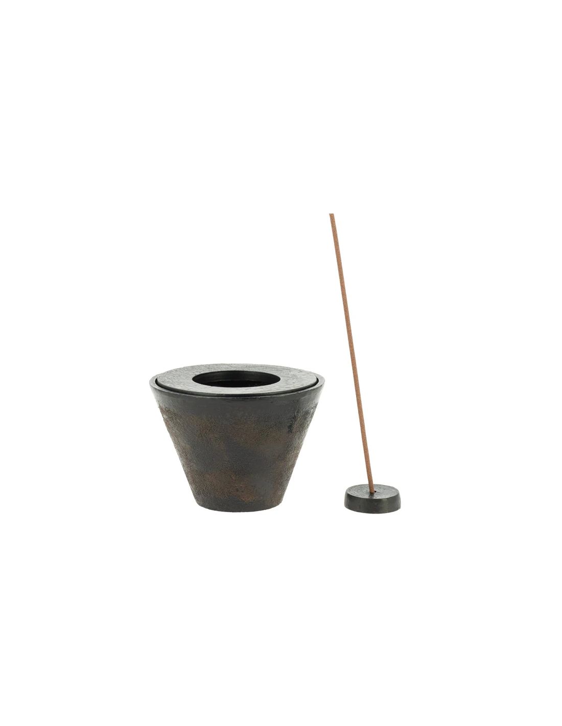 Se llama Jhana al estado mental lúcido y sereno que se origina durante la meditación. Hemos llamado así a este incensario de líneas sobrias y sólida presencia, fundido en hierro colado y fabricado artesanalmente en la India. Su diseño geométrico, casi escultórico, invita a la contemplación y al silencio y honra el espacio de tu práctica espiritual.