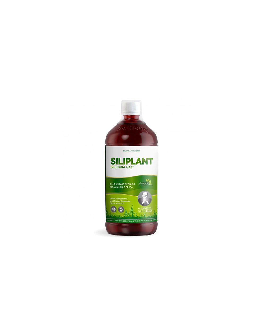 Silicium G5 Siliplant es el silicio orgánico natural de Loïc Le Ribault para el sistema osteo-articular y para la salud general del organismo. Fórmula vegetal con un conservante natural (romero). Contiene 360 mg./litro de silicio monomérico, soluble, hidrofílico y asimilable. Su fórmula está basada en el ácido ortosilícico, estabilizado por un complejo orgánico para evitar polimerizaciones.