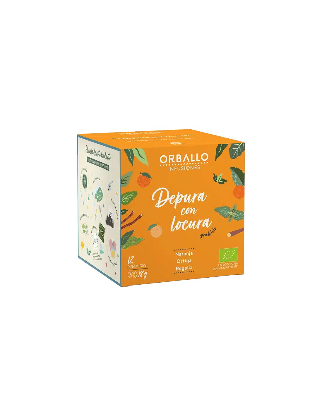Ingredientes: naranja, ortiga y regaliz 100% ecológicos. Vegana. Sin cafeína ni teína.